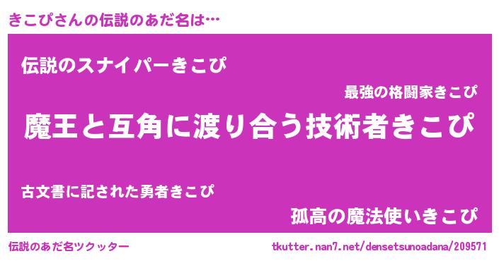 | ヒーロー風カッコイイあだ名 | 『愛の使者きこぴ』『スーパーキコピ』 |