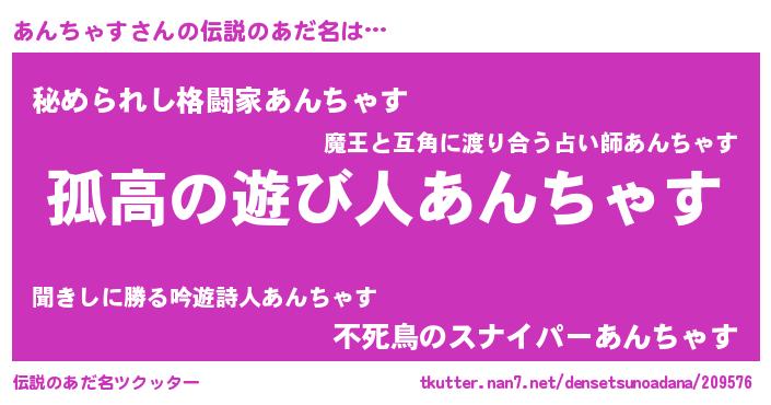 | 女子向けラノベタイトル風あだ名 | 『あんちゃすは平凡を望む』 |
