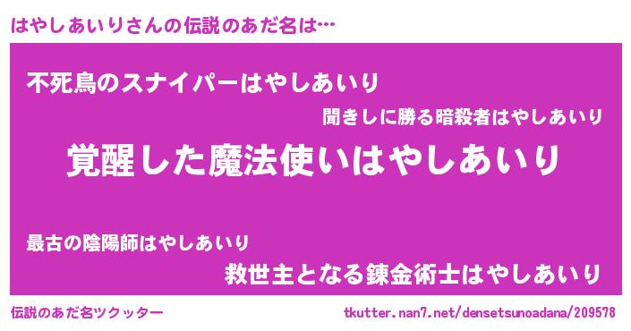 | 胡散臭い通販商品みたいなあだ名 | 『全米が絶賛したサプリメント…その名も「はやしあいり」』 |