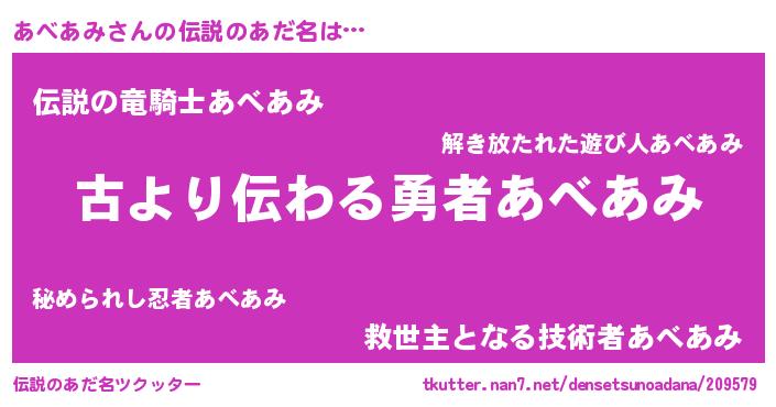 | ヒーロー風カッコイイあだ名 | 『ネオアベアミ』『仮面アベダー』 |