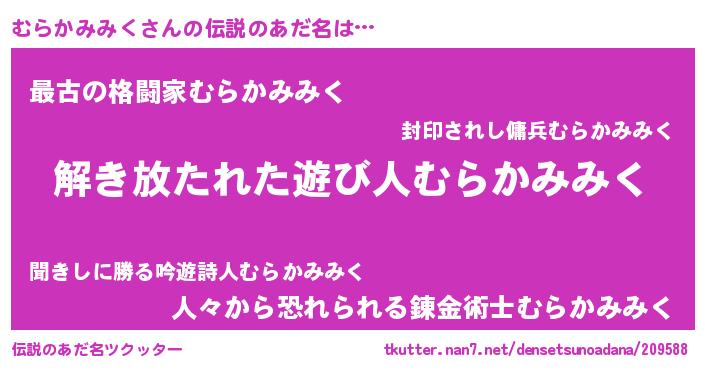 | ポケモン風あだ名 | 『ヒムラカミミク』『ムラカダネ』 |