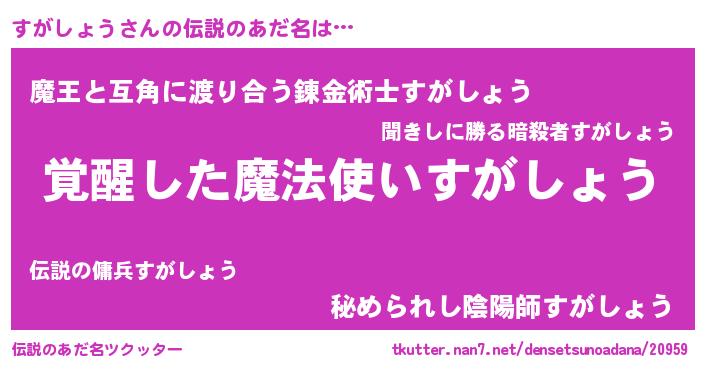 | 意味不明あだ名 | 『住所不定無職すがしょう(6歳)』 |