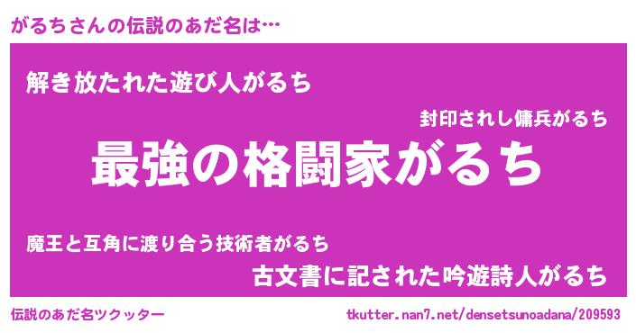 | ヒーロー風カッコイイあだ名 | 『究極戦士ガルチ』『ウルトラがるちマン』 |