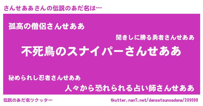 | 胡散臭い通販商品みたいなあだ名 | 『モテモテ間違いなし霊験あらたかなお札…その名も「さんせああ」』 |