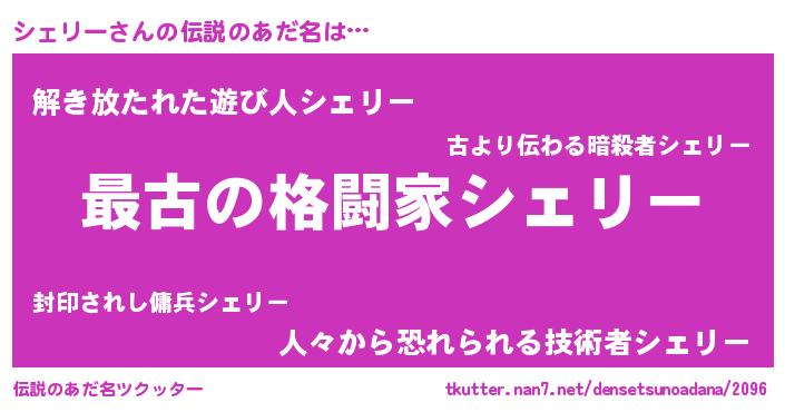 意味不明あだ名 | 『シェリーフォーエバー』『自称シェリー』 |