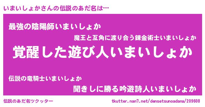 | ヒーロー風カッコイイあだ名 | 『炎刃騎士イマ』『ネオイマイショカ』 |