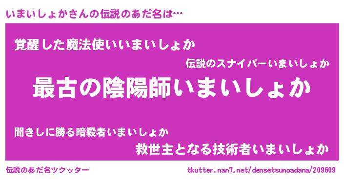 | 男性向けラノベタイトル風あだ名 | 『転生したらいまいしょかだった件』 |