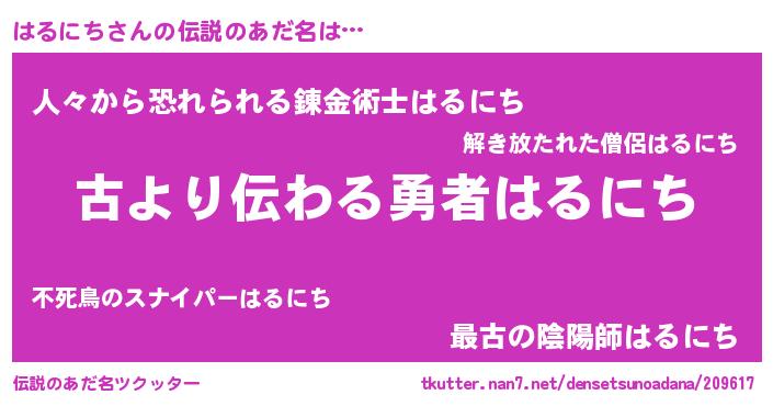 | ヒーロー風カッコイイあだ名 | 『ネオハルニチ』『仮面ハルダー』 |