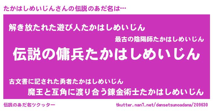 | ヒーロー風カッコイイあだ名 | 『スーパータカハシメイジン』 |