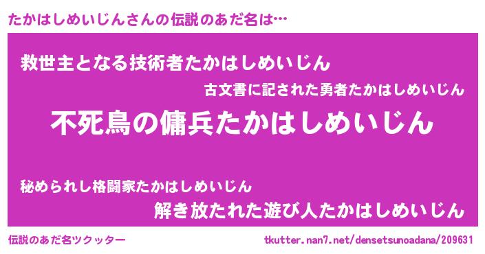 | 欧米人風あだ名 | 『たかはしめいじん・ステッグマイヤー』 |
