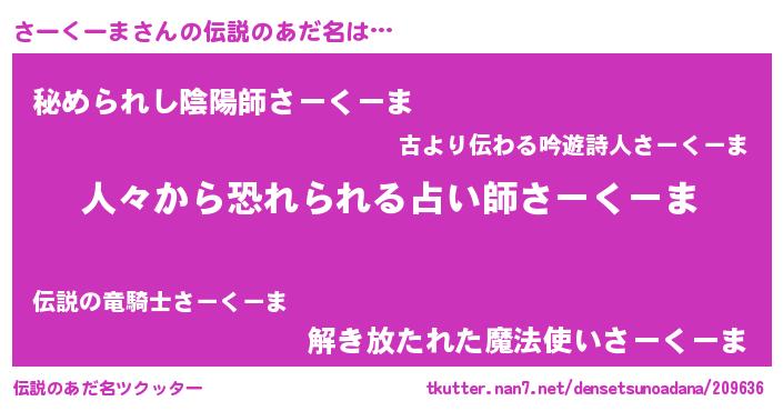 | ヒーロー風カッコイイあだ名 | 『友情の使者さーくーま』『仮面サーダー』 |