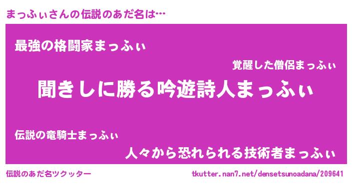 | ヒーロー風カッコイイあだ名 | 『ネオマッフィ』『ウルトラまっふぃマン』 |