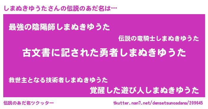 | 意味不明あだ名 | 『永久保存しまぬきゆうた』 |