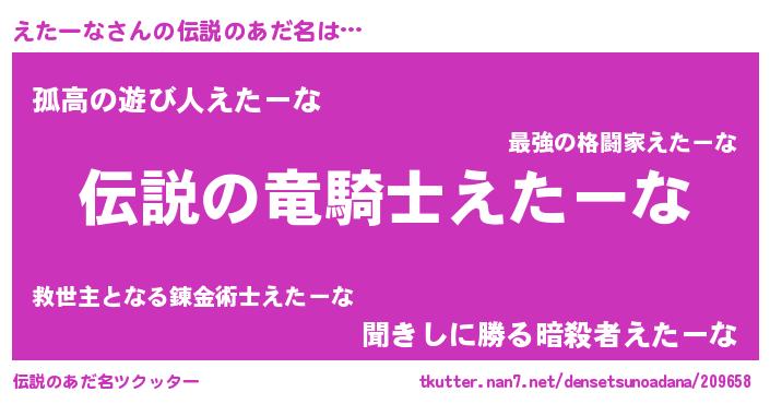 | 意味不明あだ名 | 『ペロリンえたーな』『自称えたーな』 |