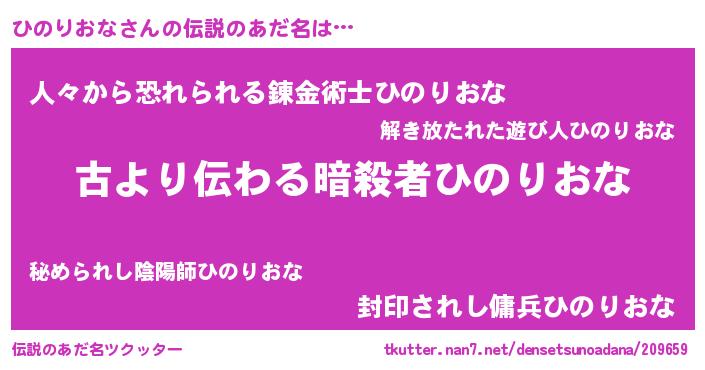 | ファンタジー風あだ名 | 『ヒノディッシュ』『クインヒット』 |