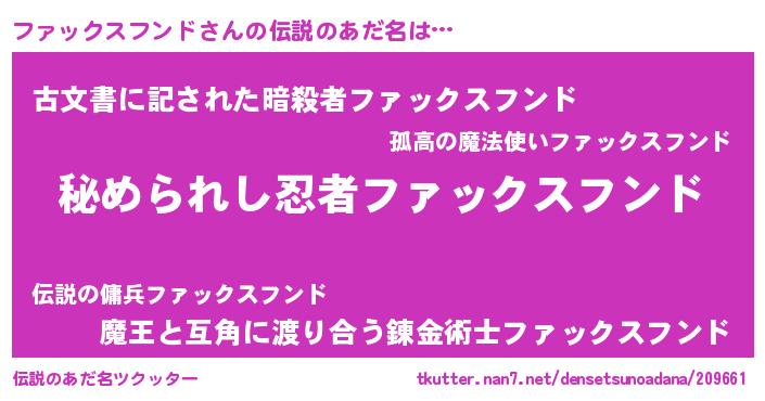 | 男性向けラノベタイトル風あだ名 | 『ファックスフンドスレイヤー』 |