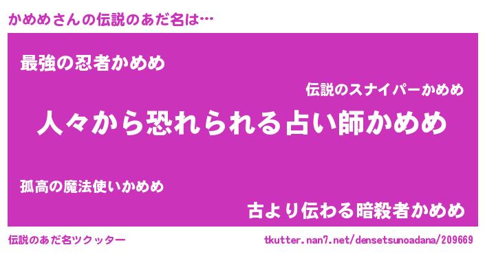 | ヒーロー風カッコイイあだ名 | 『正義の使者かめめ』『仮面カメダー』 |