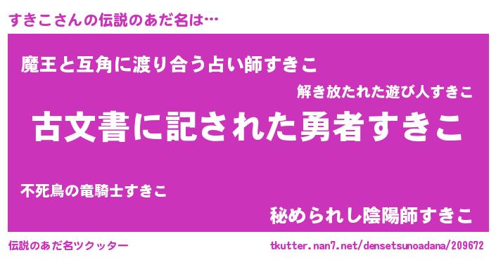 | ヒーロー風カッコイイあだ名 | 『ネオスキコ』『天空の使者すきこ』 |