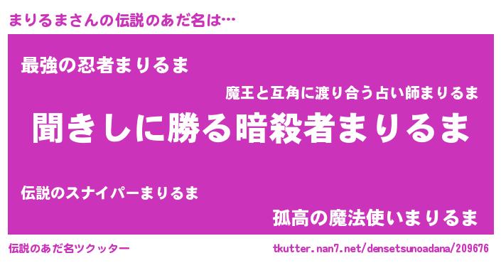 | 胡散臭い通販商品みたいなあだ名 | 『絶対に幸福をもたらす健康食品…その名も「まりるま」』 |