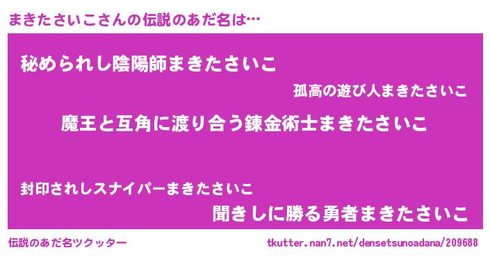 | 女子向けラノベタイトル風あだ名 | 『まきたさいこ恋絵巻』 |