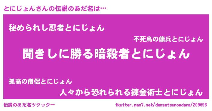 | 意味不明あだ名 | 『住所不定無職とにじょん(59歳)』 |
