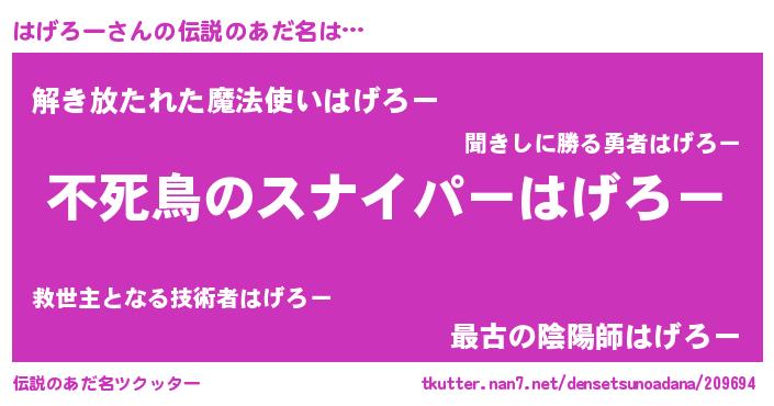 | ヒーロー風カッコイイあだ名 | 『スーパーハゲロー』『仮面ハゲダー』 |
