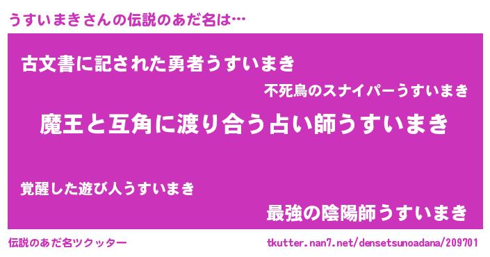 | ヒーロー風カッコイイあだ名 | 『愛の使者うすいまき』『ネオウスイマキ』 |