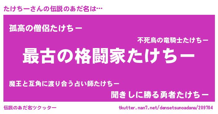 | 意味不明あだ名 | 『たけちーフォーエバー』『自称たけちー』 |