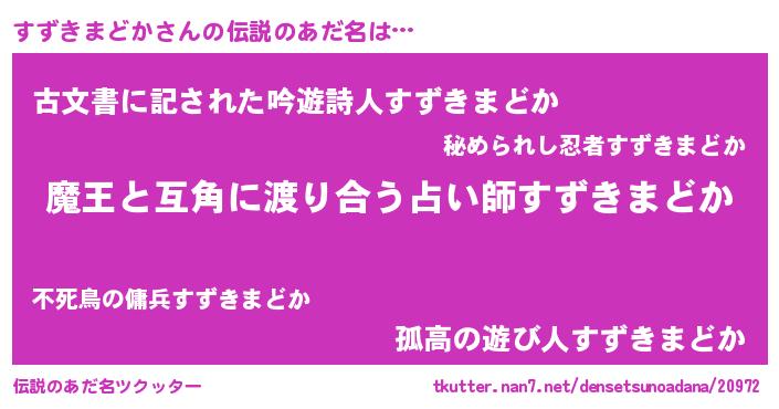 | ヘコむあだ名 | 『すずきまどか(爆)』『すずぷりん』 |
