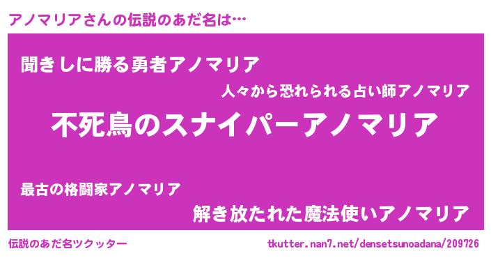 | 胡散臭い通販商品みたいなあだ名 | 『モテモテ間違いなし霊験あらたかなお札…その名も「アノマリア」』 |
