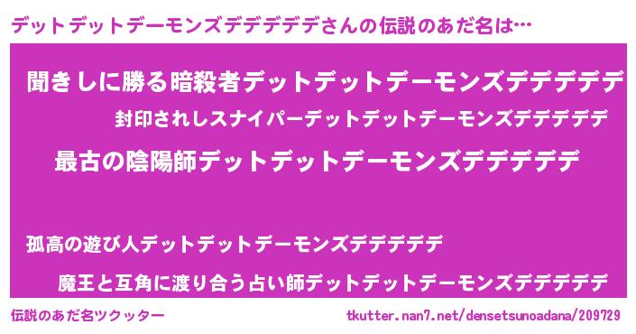 | 胡散臭い通販商品みたいなあだ名 | 『世界中を虜にした世界で10本だけ現存している希少なブランデー…その名も「デットデットデーモンズデデデデデ」』 |