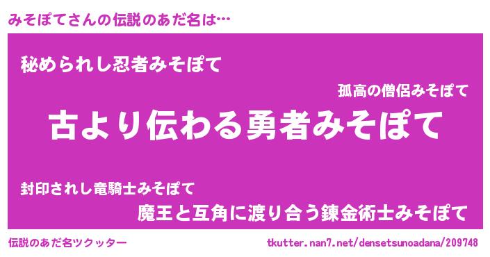 | ヘコむあだ名 | 『みそぽて(震え声)』『酢こんぶ』 |