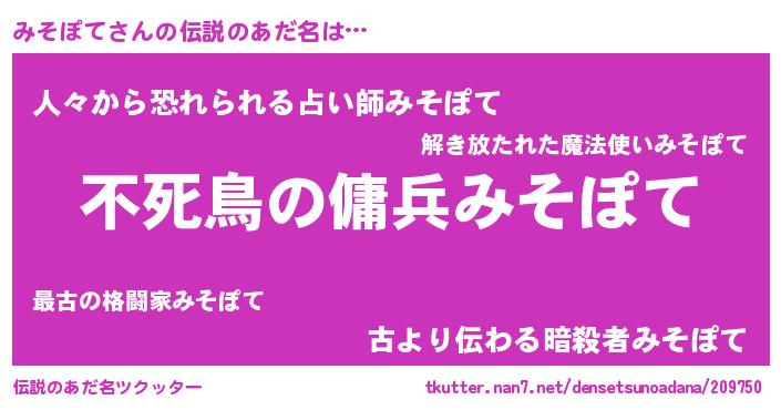 | ヒーロー風カッコイイあだ名 | 『スーパーミソポテ』『愛の使者みそぽて』 |