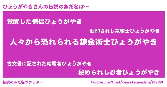 | ヒーロー風カッコイイあだ名 | 『正義の使者ひょうがやき』 |