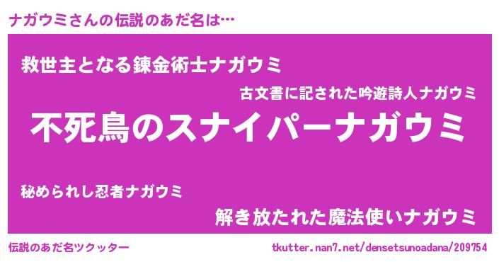 | ファンタジー風あだ名 | 『ナガフェル』『ヴァルナガーナ』 |