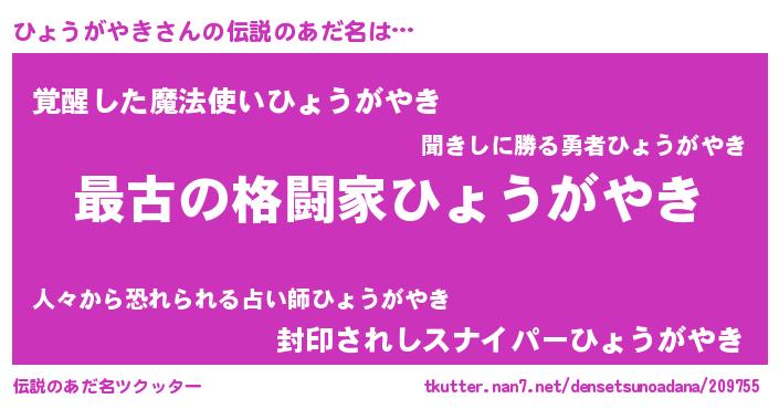 | ファンタジー風あだ名 | 『エターナルヒョウガヤキー』 |