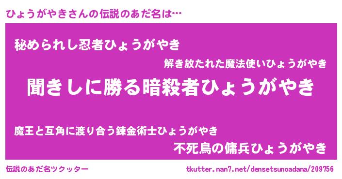 | 胡散臭い通販商品みたいなあだ名 | 『絶対に幸福をもたらす健康食品…その名も「ひょうがやき」』 |