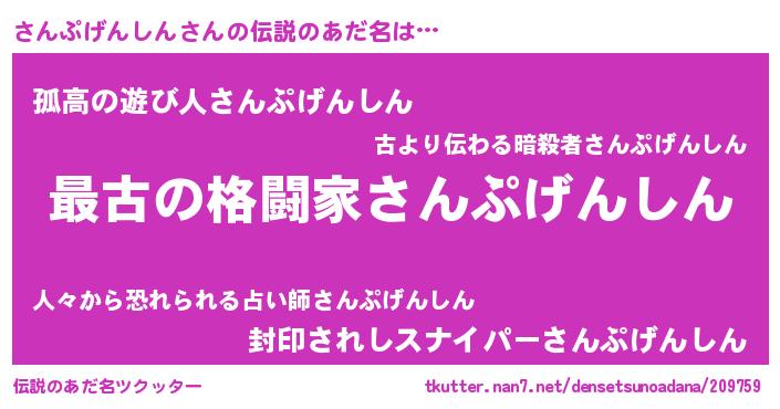 | 意味不明あだ名 | 『さんぷげんしんフォーエバー』 |