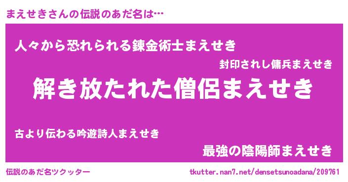 | 意味不明あだ名 | 『とにかく怪しいまえせき』 |