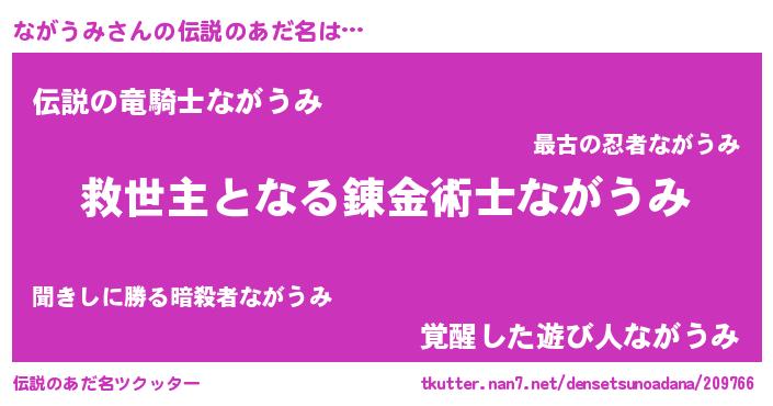 | ヒーロー風カッコイイあだ名 | 『天空の使者ながうみ』『天弓騎士ナガ』 |