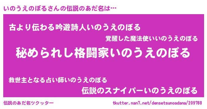 | ヒーロー風カッコイイあだ名 | 『ウルトラ戦士イノウエノボル』 |