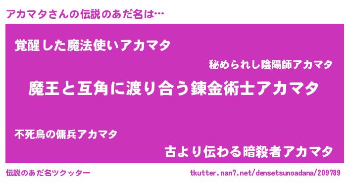 | ヒーロー風カッコイイあだ名 | 『愛の使者アカマタ』『天弓騎士アカ』 |