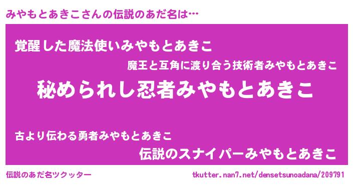 | 意味不明あだ名 | 『みやもとあきこフォーエバー』 |