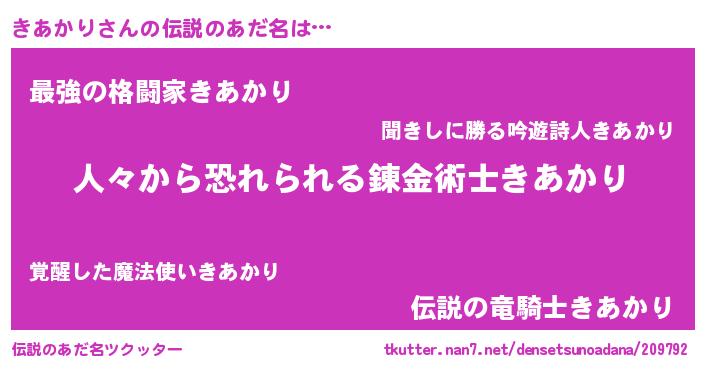| 男性向けラノベタイトル風あだ名 | 『おまえをオタクにしてやるから、俺をきあかりにしてくれ! 』 |
