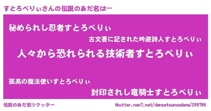 | 胡散臭い通販商品みたいなあだ名 | 『ガンによく効く高麗人参…その名も「すとろべりぃ」』 |
