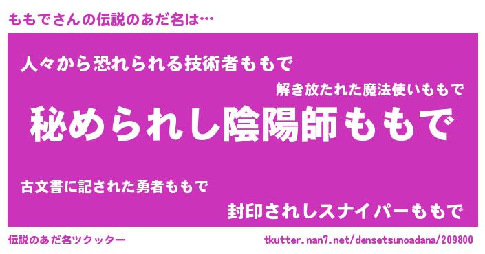 | ファンタジー風あだ名 | 『ゼモモトゥ』『エターナルモモデー』 |