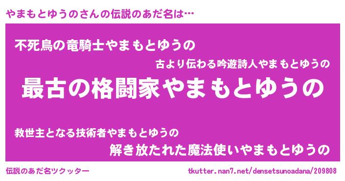 | 意味不明あだ名 | 『住所不定無職やまもとゆうの(3歳)』 |