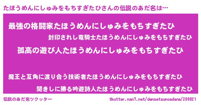| 欧米人風あだ名 | 『トリンドルたほうめんにしゅみをもちすぎたひ』 |