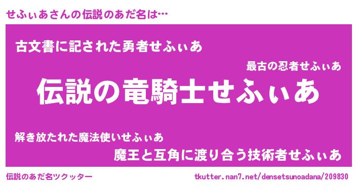 | 意味不明あだ名 | 『住所不定無職せふぃあ(7歳)』 |