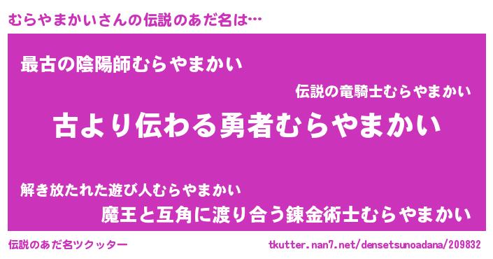 | ヒーロー風カッコイイあだ名 | 『サイバー戦士ムラヤマカイ』 |